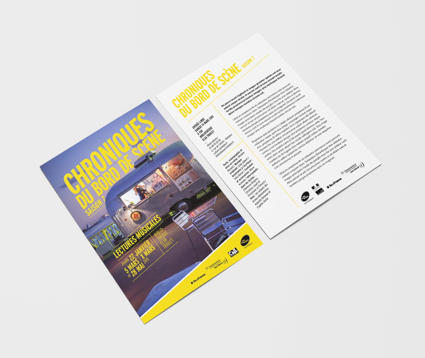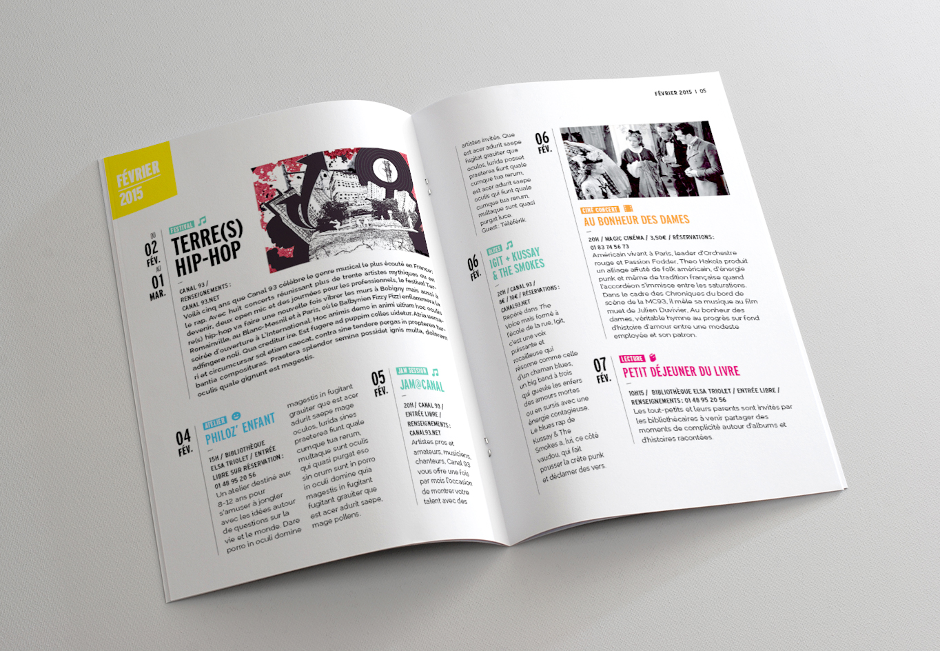 Direction artistique et design graphique global de la nouvelle charte culturelle de la ville de Bobigny. Souple, dynamique et modulaire, elle s’adapte aux contraintes iconographiques existantes tout en affichant une identité forte. Elle est caractérisée par 3 éléments clé: le jaune comme couleur transverse et identitaire, une typo impactante pour des titres puissants, et une grille inclinée adaptable dans laquelle viennent se glisser les contenus. Elle se décline sur les différents supports qui assurent la promotion des événements culturels à venir (affiches, flyers, agenda culturel annuel,…)