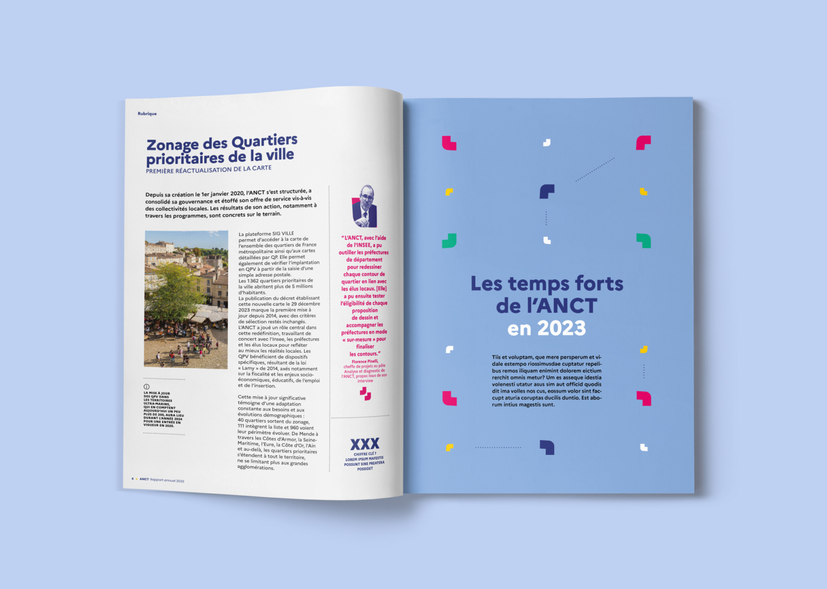 La direction artistique du support s’est orientée vers une approche à la fois magazine et institutionnelle pour cette nouvelle édition. Le document propose une lecture cohérente immersive de l’année écoulée, dans le but de susciter l’adhésion de ses différents publics et en premier lieu les élus.