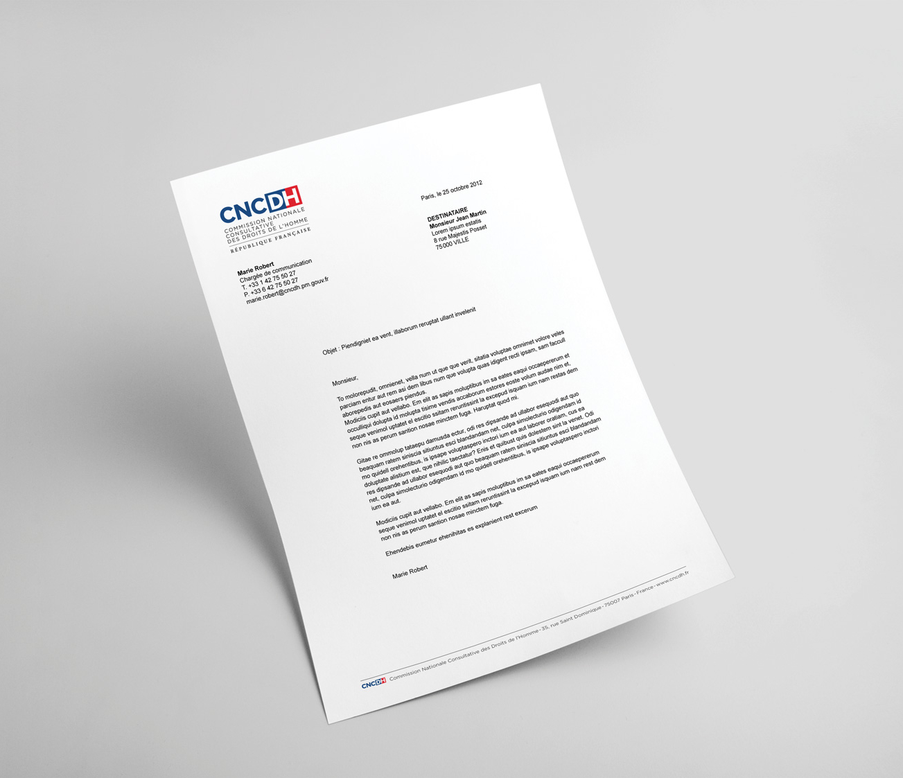 Création graphique du logo de la Commission Nationale Consultative des Droits de l’Homme (CNCDH), organisme indépendant chargé de conseiller le gouvernement sur la protection des droits humains. Déploiement de l’identité visuelle sur l’ensemble des supports : papeterie, documents officiels, site internet et réseaux sociaux, assurant cohérence et visibilité de l’institution.