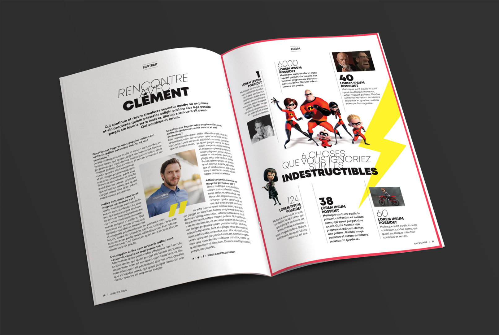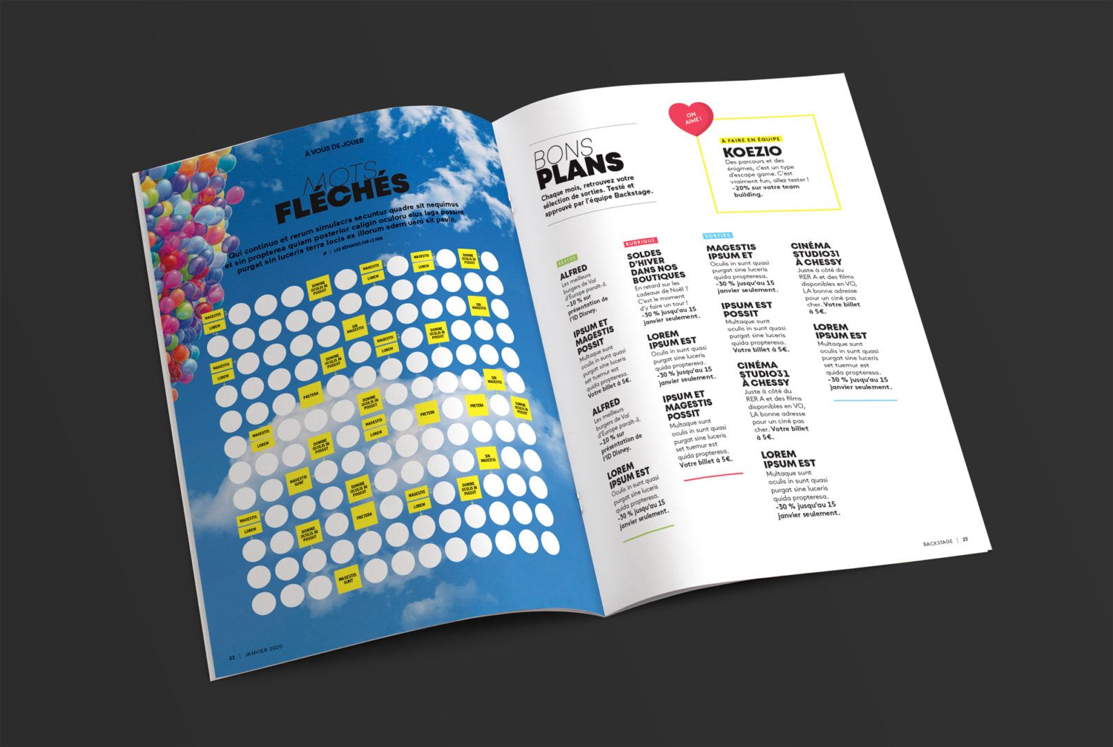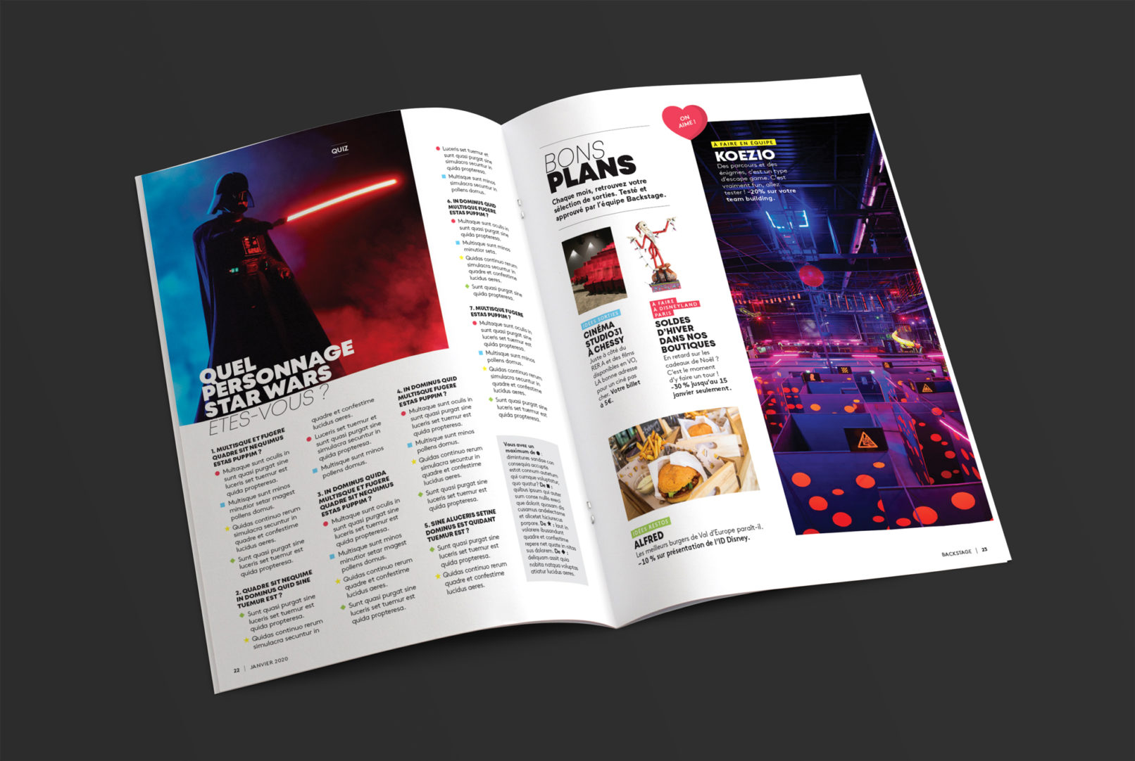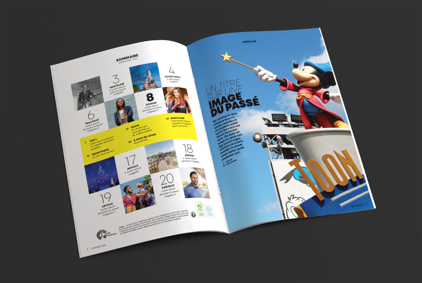Pour la 3ème fois consécutive, Disneyland Paris m’a confié la refonte globale de son magazine interne Backstage. Destiné aux Castmembers qui officient quotidiennement, l’objectif était de moderniser le support en créant de nouvelles rubriques variées et de fidéliser les lecteurs en valorisant les équipes et les nombreux événements in situ. En somme, proposer un magazine résolument positif et qui donne envie d’être lu.