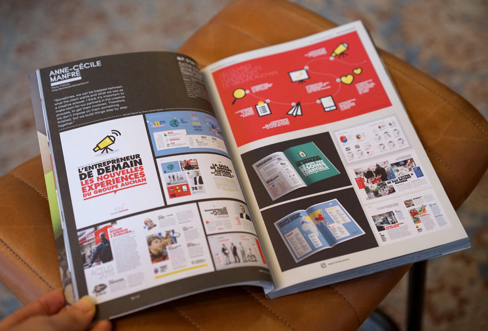 Dans son numéro de janvier, le magazine international IdN a consacré 5 pages à quelques-unes de mes créations. Elles ont été choisies dans le cadre d’une parution spéciale sur le design graphique des rapports, brochures et catalogues. L’année commence bien !