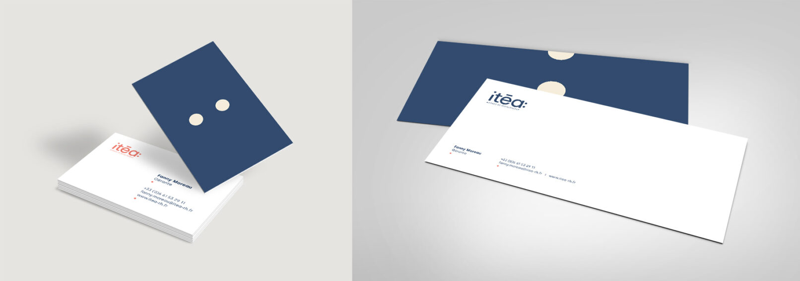 Calage du logo et déclinaison du territoire graphique d’Itéa, professionnels de la prestation et du recrutement en IT.