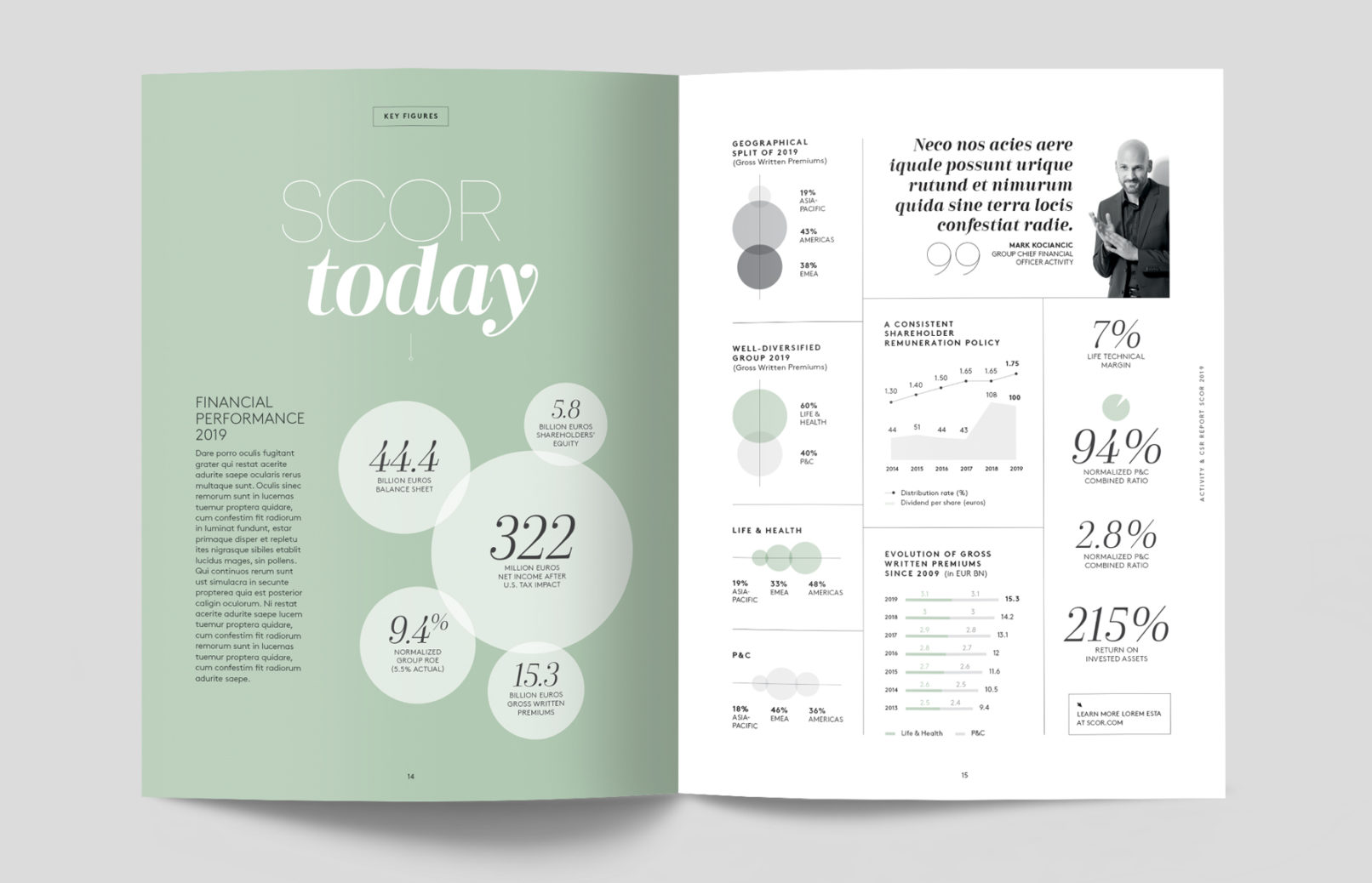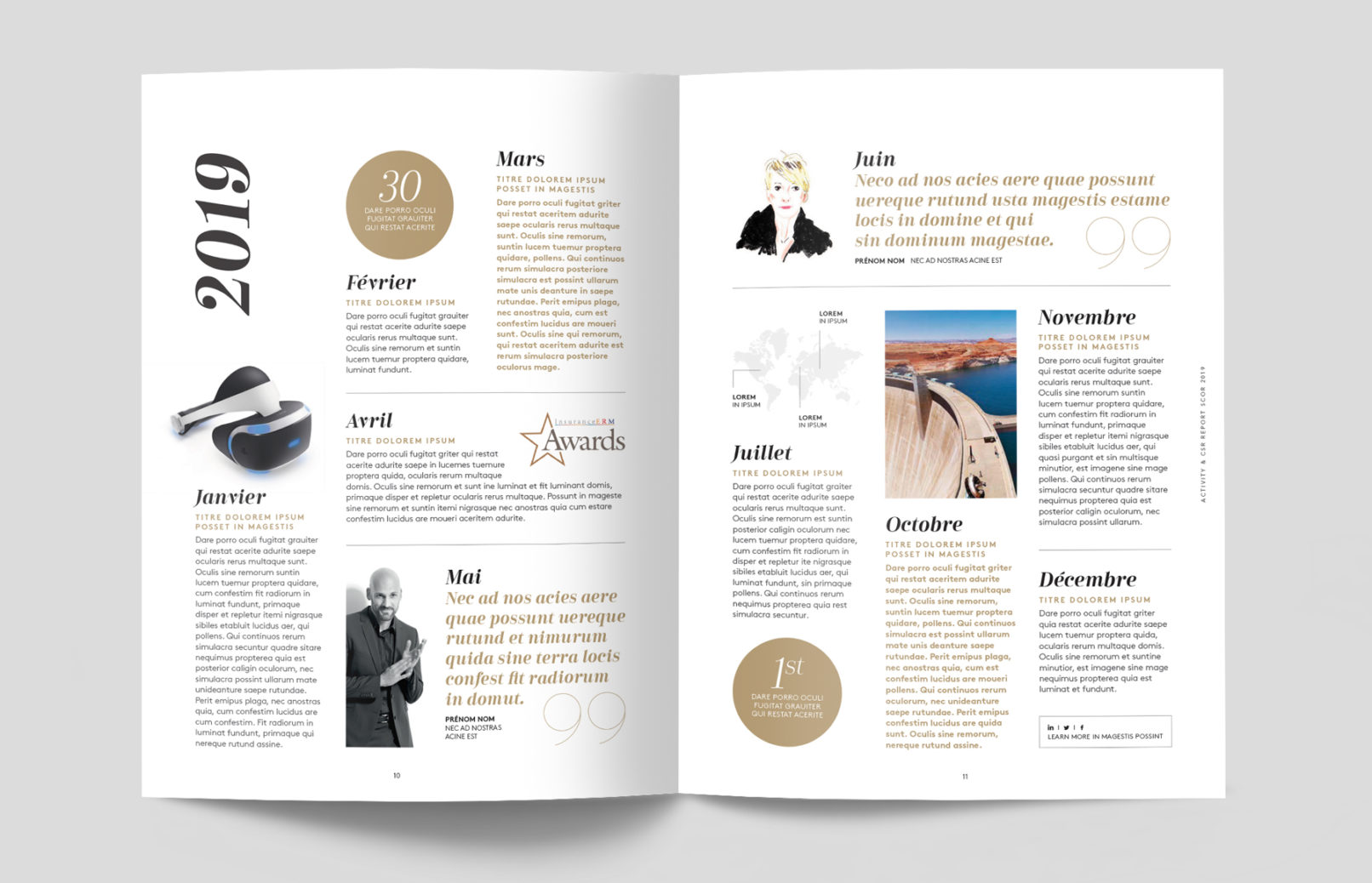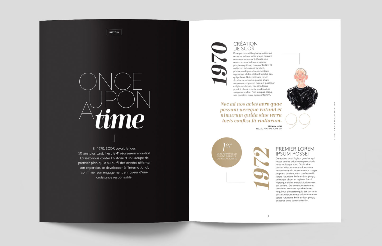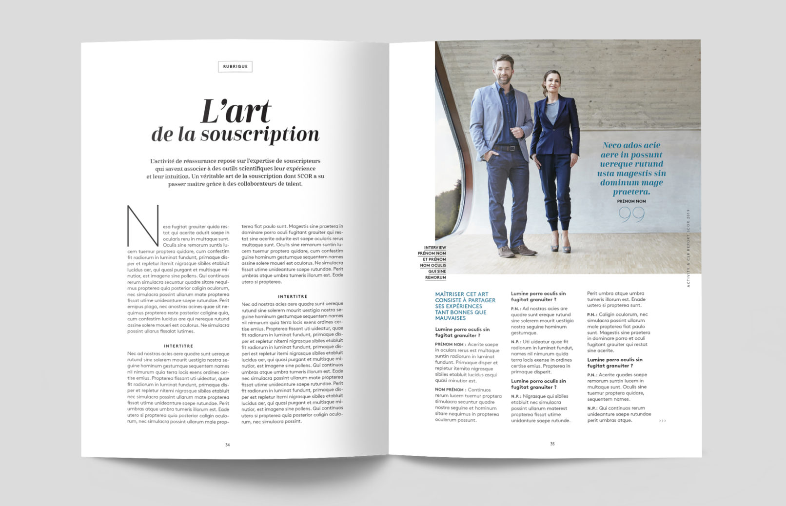 Pour cette édition spéciale célébrant les 50 ans de SCOR, la direction de la communication a souhaité renforcer le positionnement du Groupe au travers de son histoire et de son expertise, en s’inspirant de l’univers du luxe et du magazine.